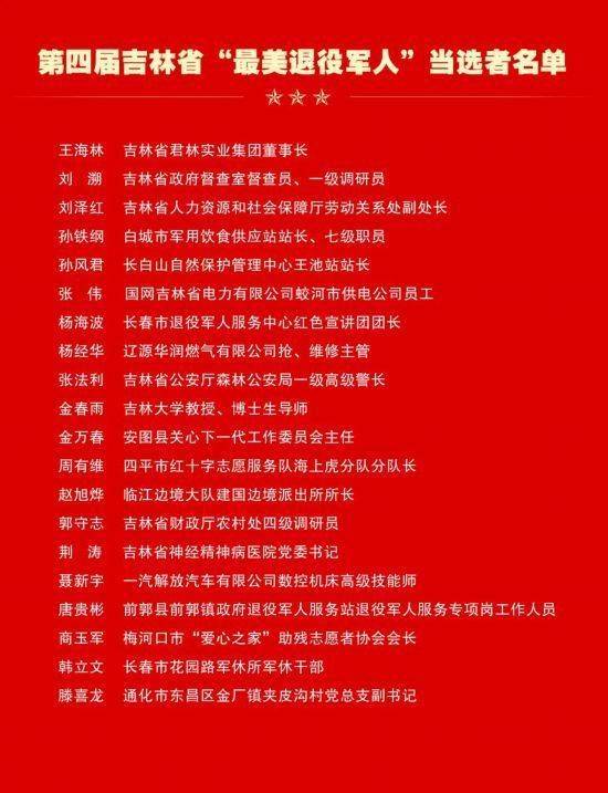 第四届吉林省“最美退役军人”20名当选者。