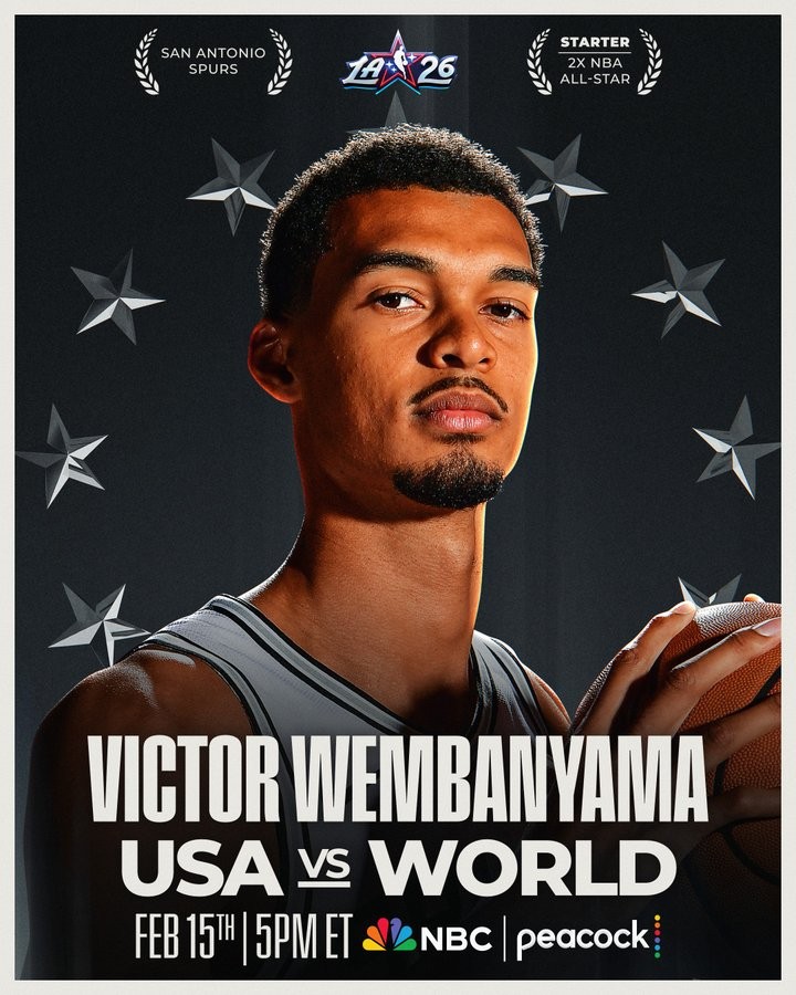 2026年NBA全明星赛将采用美国队对阵世界队的全新赛制,包括两支由美国本土球员组成的美国队和一支世界联队进行循环赛,比赛2026年2月15日将在美国洛杉矶的Intuit Dome举行