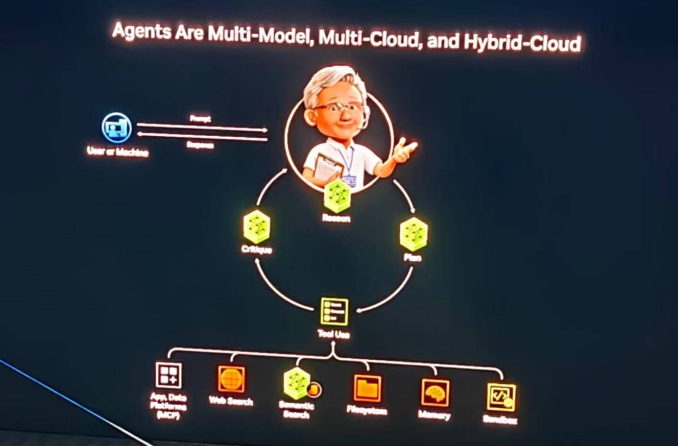 黄仁勋重点阐述了英伟达对物理AI等AI未来发展趋势的理解,以及一些关于英伟达芯片的最新消息。他强调,AI 正在变成一个跨模态、跨模型、跨云、跨形态部署的复杂系统,能够理解多种形态的数据,针对不同问题选择最合适的模型,并将天然运行在多云环境之上,这将成为未来应用构建的基本范式。黄仁勋判断,自动驾驶汽车将成为“首个大规模的、面向主流市场”的物理AI应用场景。